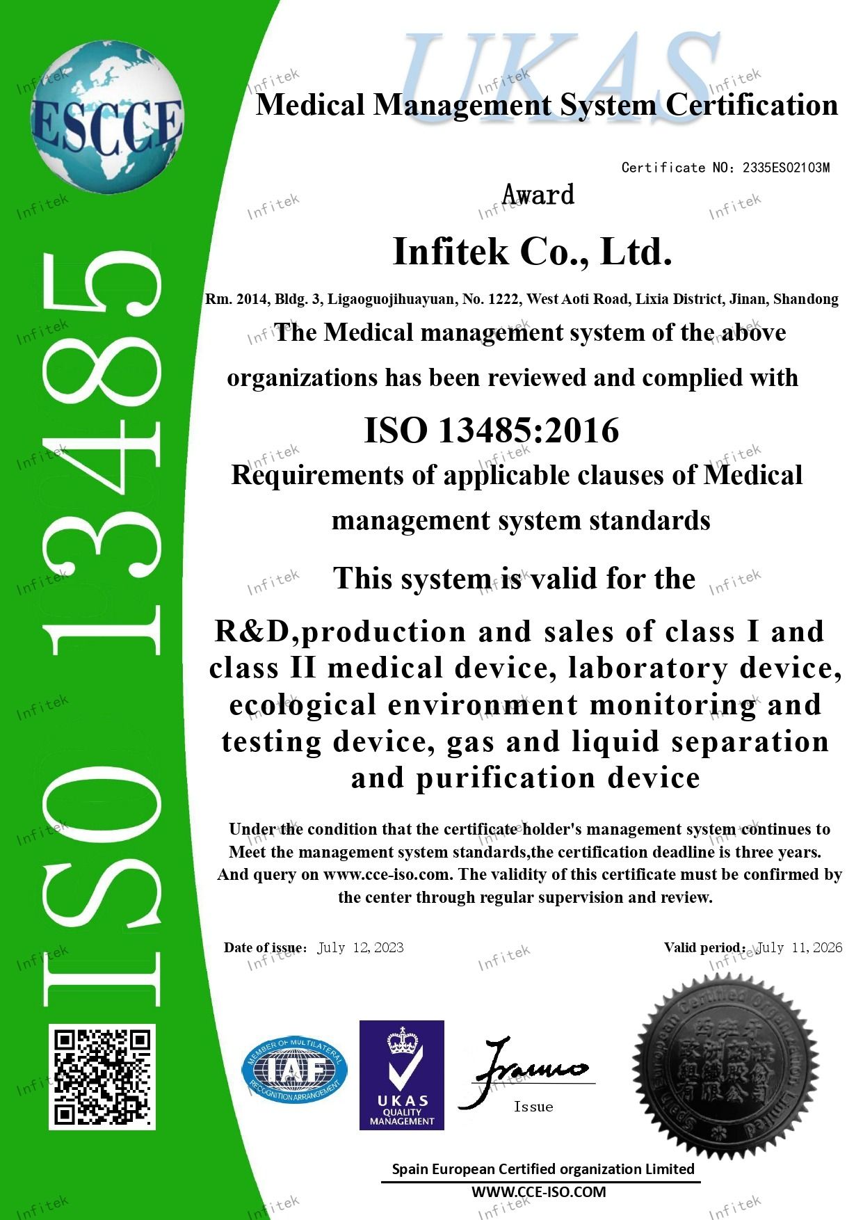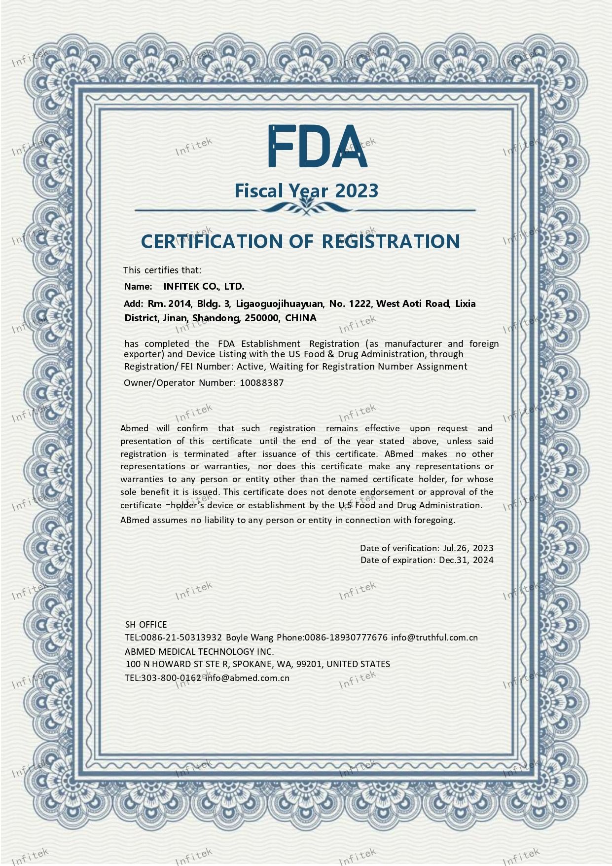 Infitek成立于2010年,是一家以创新和服务为驱动的实验室和医疗领域专业制造商,旗下品牌包括Infitek、Bioevopeak、Sunoom,公司通过ISO9001、ISO13485和知识产权管理体系认证