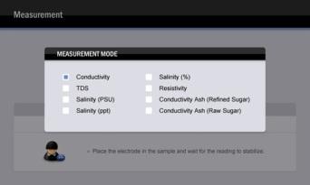 • Selectable reference temperature, TDS conversion factor, linear/non-linear/pure water compensations, seawater and practical salinity measurement modes