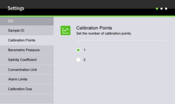 - 1 or 2 points calibration using the air-saturated water or zero oxygen solution.