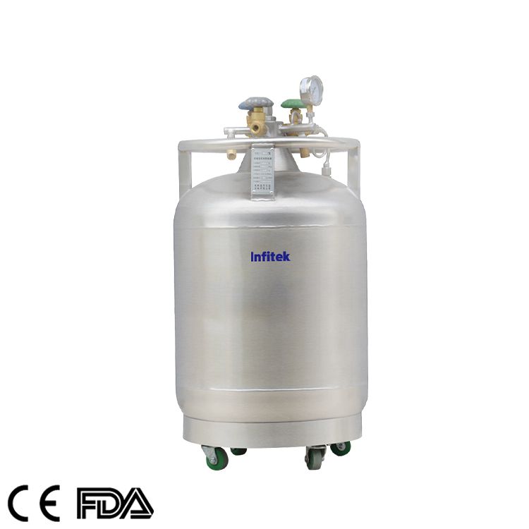 Liquid nitrogen storage container, LNS Series is mainly used for liquid nitrogen storage. It uses small amount of liquid nitrogen vaporizing to increase the pressure inside the tank, so that the tank can automatically discharge liquid nitrogen to other containers. The stainless steel structure design is suitable for most environment and reduces the rate of evaporation losses. All the models are equipped with pressure building valve, liquid valve, release valve and pressure gauge. All the models are equipped with 4 rollers at the bottom for easy to move. This series liquid nitrogen storage container Mainly applicable to laboratory users and chemical users for liquid nitrogen storage and liquid nitrogen automatic supply.